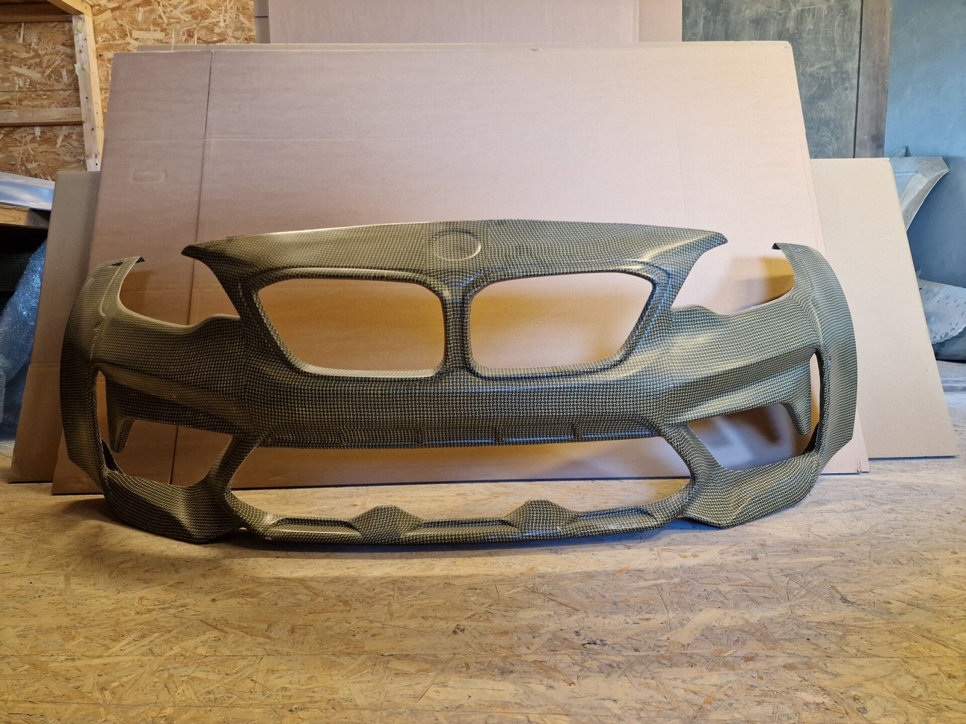 TRACKMAD BMW F20/21 and F22/87 front wide bumper. Front bumper fits only racing car with trackmad wide fenders. Fits all f20 and f21 models with 2 series headlights and f22/87 models.