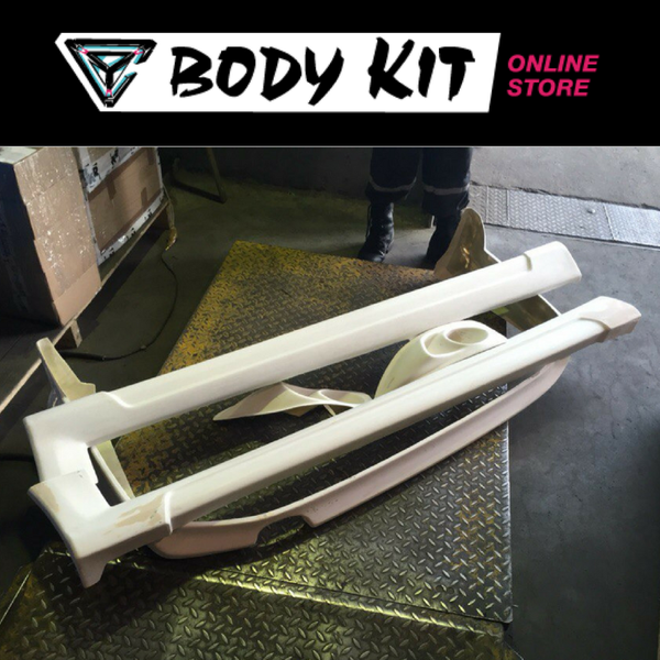 Complete side skirts, fiberglass material, 3-4mm thickness, color gray.