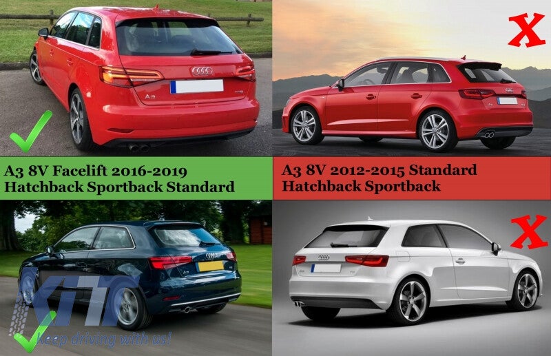 This package is meant to add a more sporty touch on your Audi A3 8V Facelift Standard (SE) and convert it into a genuine S3 model.