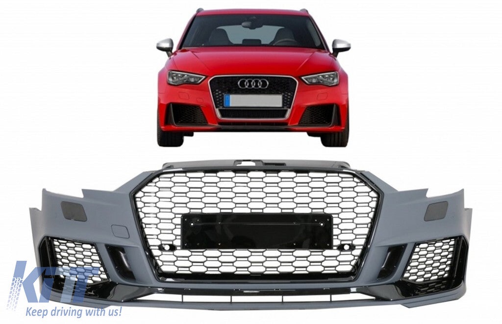 This front bumper is meant to convert your Audi A3 8V (2016-2019) facelift model into a aggressive RS3 model.