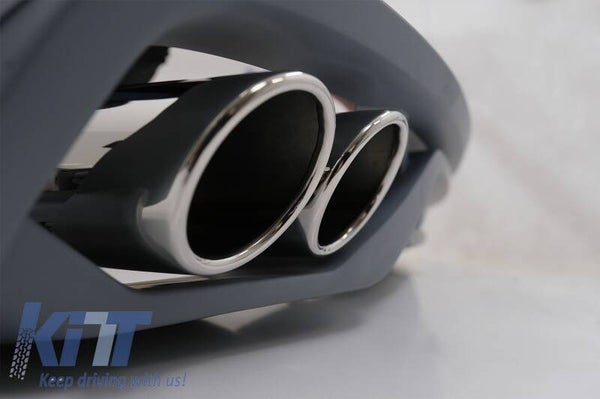 Rear Bumper Air Diffuser AB-Design crafted in high quality ABS plastic, equipped with double exhaust outlets with 304 stainless steel muffler tips.