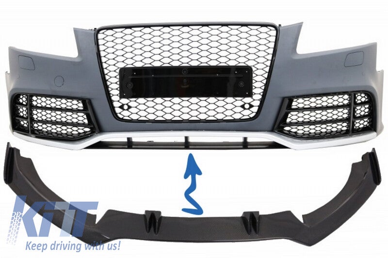 This front bumper add on spoiler, handcrafted out of best quality real carbon, is meant to add a more sporty touch on your RS5. Specially designed for OE RS5 bumpers
