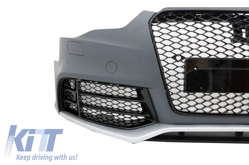 Equipped with honeycomb RS5 design central grille, side grilles and lower bumper extension.