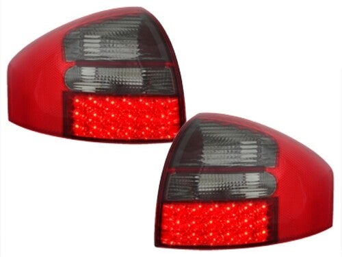 DECTANE LED TAILLIGHTS AUDI A6 4BWith E-approval: STREET LEGAL suitable for: Audi A6 4Byear: 97 - 04 version: red / smoke content: 1 set includes 2 taillightscondition: new / original packagingPlug&Play: compatible to all original carriers and plug connectorscompatible with board computer illumination:position light: LEDbrake light: LEDindicator: Halogen BA15S (included)back up lamp: Halogen BA15S fog light: Halogen BA15S extra reflectors included in delivery