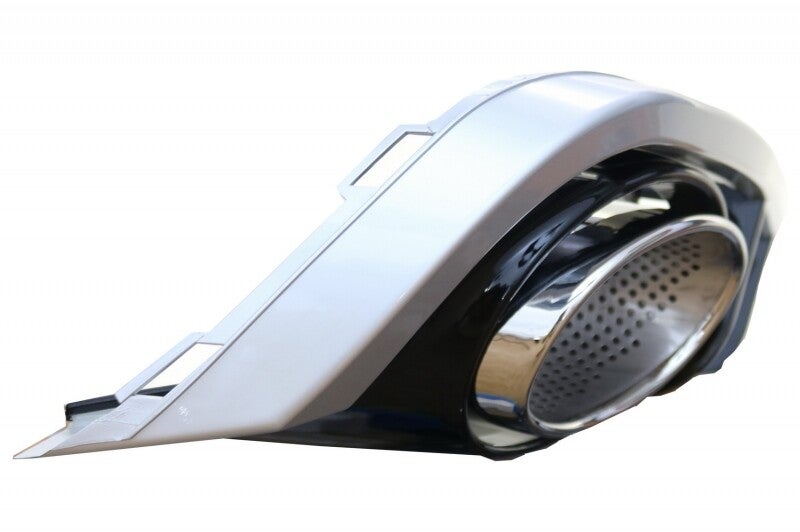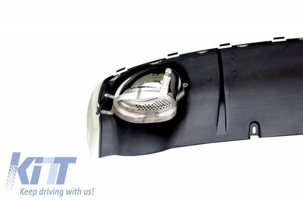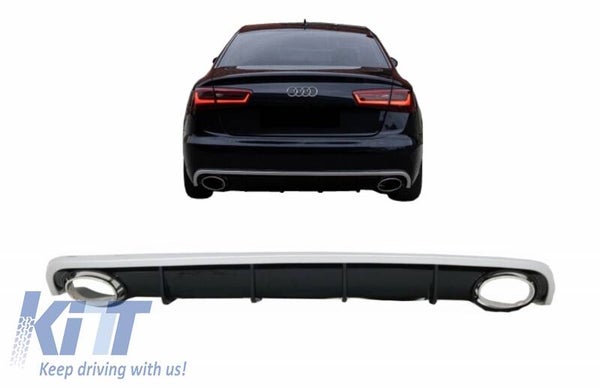 Rear Bumper Air Diffuser RS6 Design crafted in high quality ABS plastic, equipped with double exhaust outlets with 304 stainless steel muffler tips.