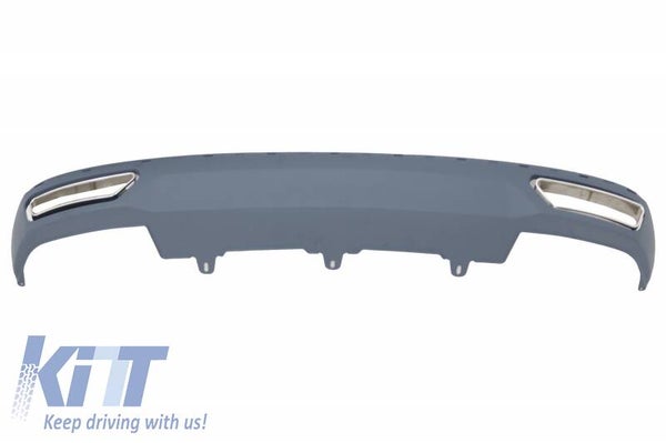 Rear Bumper Air Diffuser crafted in high quality ABS plastic, equipped with double exhaust outlets with 304 stainless steel muffler tips.