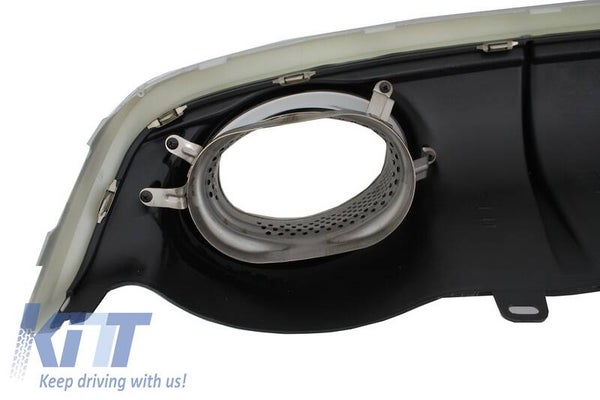Rear Bumper Air Diffuser RS7 Design crafted in high quality ABS plastic, equipped with double exhaust outlets with 304 stainless steel muffler tips.