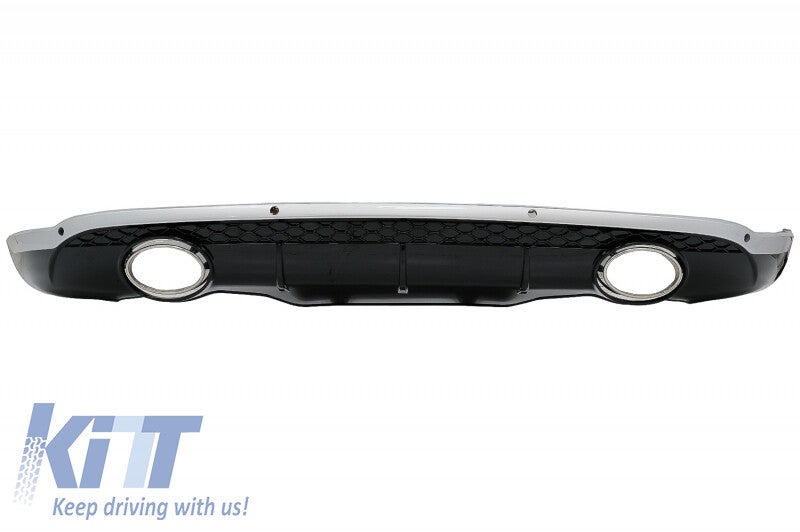 Rear Bumper Air Diffuser crafted in high quality polypropylene, equipped with double exhaust outlets with 304 stainless steel muffler tips and plastic honeycomb insertion. Rear diffuser is equipped with parking sensor holders (PDC)