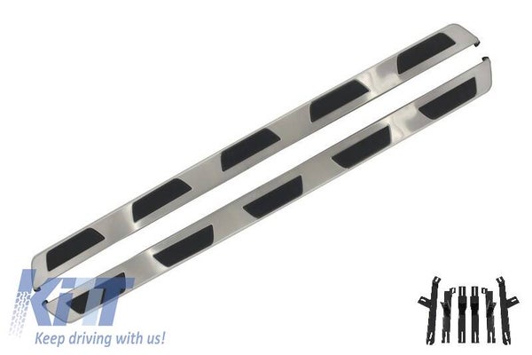 Running boards, side steps made of high quality stainless steel, aluminium and PVC.