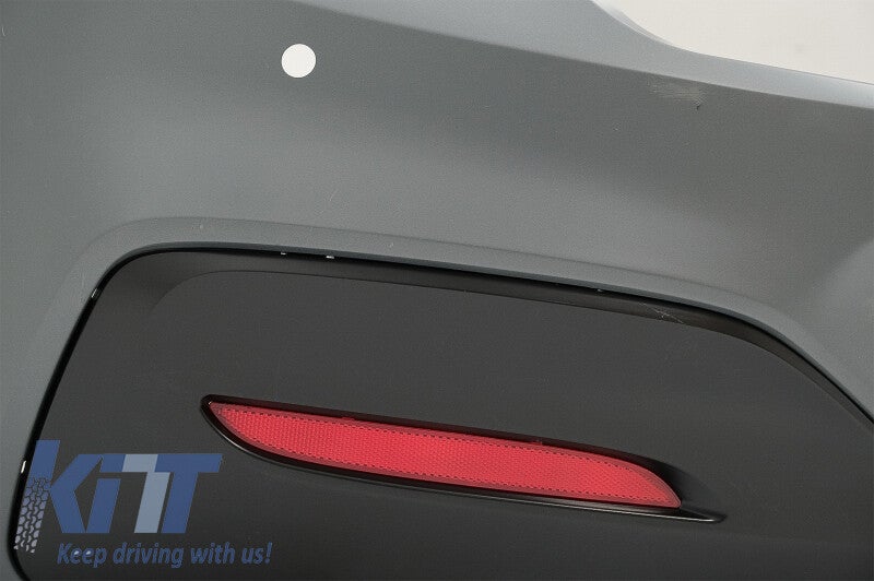 Rear bumper M-Sport equipped with single outlet rear air diffuser and PDC holders.