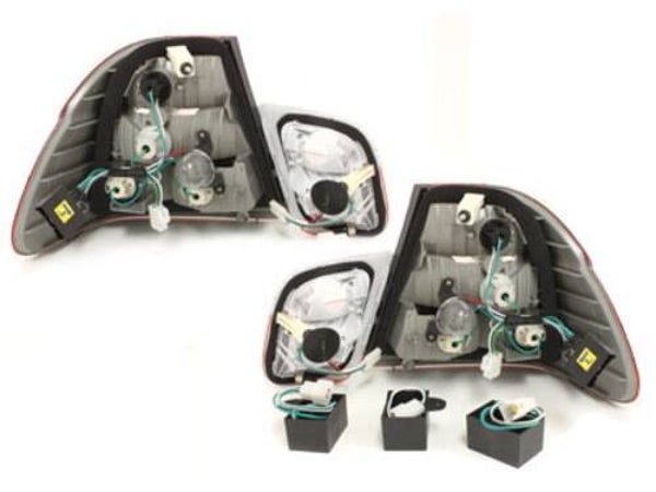 DECTANE LED TAILLIGHTS BMW E46 LIMOUSINEWith E-approval: STREET LEGAL suitable for: BMW E46 Limousineyear: 98 - 01version: red / clear content: 1 set includes 2 outer parts and 2 inner partscondition: new / original packagingPlug&Play: compatible to all original carriers and plug connectorserror messages excluded: all control units / resistors are included in deliveryreflector included illumination:position light: LEDbrake light: LEDindicator: Halogen BA15S (included)back up lamp: Halogen BA15S fog light: LED