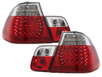 DECTANE LED TAILLIGHTS BMW E46 LIMOUSINEWith E-approval: STREET LEGAL  suitable for: BMW E46 Limousineyear: 02 - 04version: red / chrome  content: 1 set includes 2 outer parts and 2 inner partscondition: new / original packagingPlug&Play: compatible to all original carriers and plug connectorserror messages excluded: all control units / resistors are included in deliveryreflector included  illumination:position light: LEDbrake light: LEDindicator: LEDback up lamp: Halogen BA15S (included) fog light: Halogen BA15S (included)