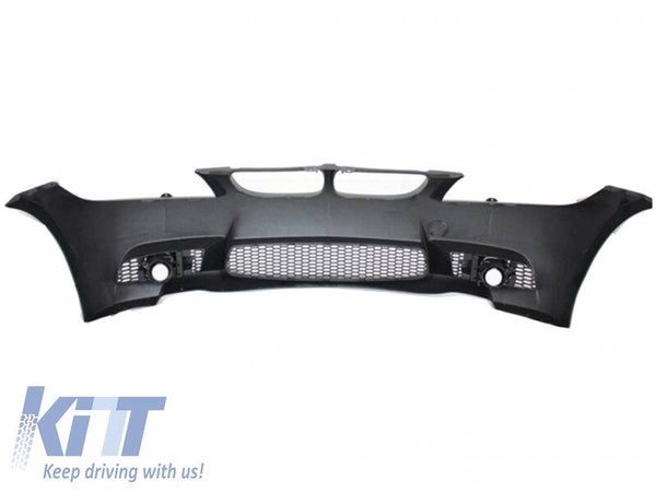 Front Bumper M3 Design Front bumper is crafted in high quality PP (polypropylene) Article require priming and painting. Without PDC (parking sensors), without SRA (headlights washer system)